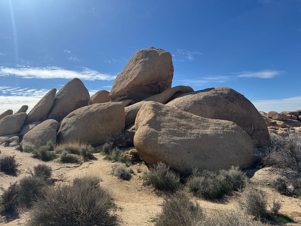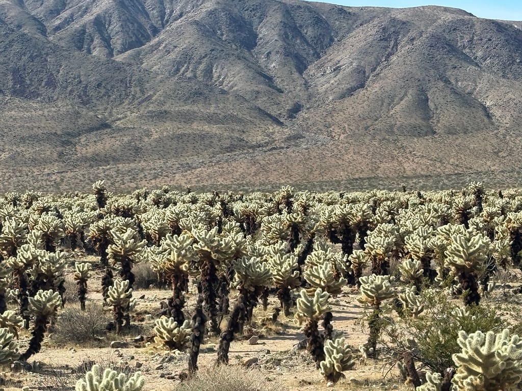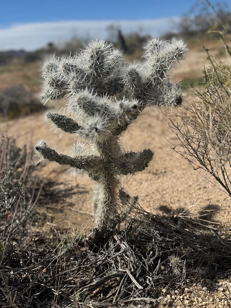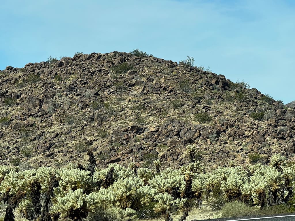 Next came a forest of Joshua trees standing tall like “real” trees. (We learned they are part of the yucca family.) Each one was uniquely designed — some with wild, erratic limbs stretching in every direction, others thick and bushy, and a few crowned with delicate white blooms. No two looked alike.
